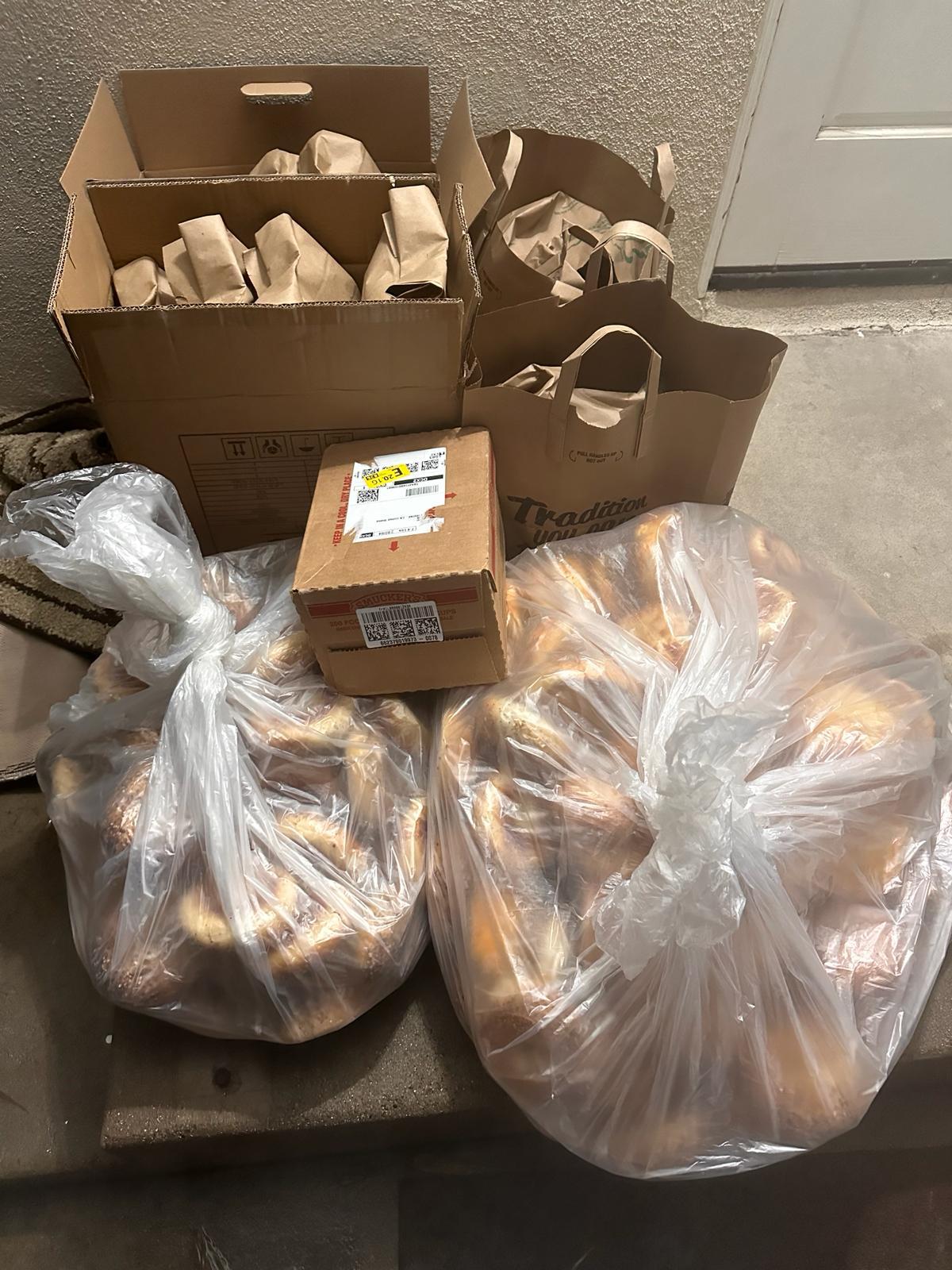 On February 6, 2024 a partnership with a grass root organization, Transforming Trips our families provided 25 lunches and 150+ bagels along with jelly packs. The bagels were collected as a part of Zero Waste Initiative.